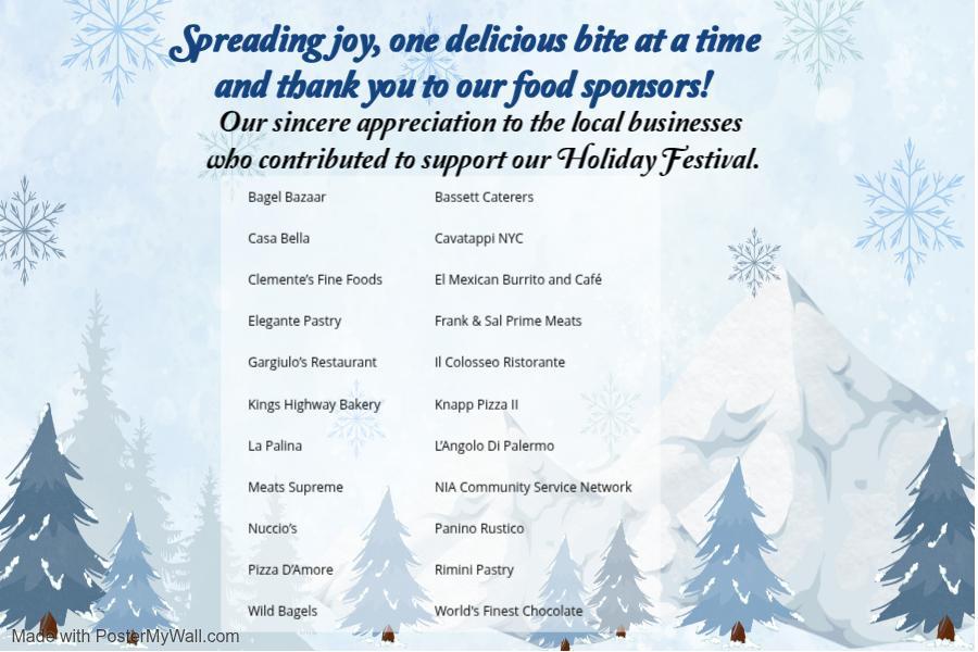 The 13th Annual Holiday Festival was a great success last week. I believe we had a record number of attendees this year. It is a tremendous job that involves tons of planning and teamwork, and we are deeply grateful to all who made it possible. Thank you again to the many establishments that generously donated food and raffle gifts. Please see the attached list and take the time to return the favor by supporting and thanking them. To our NIA afterschool program and PTA for their donations and support, and to the pre-planners and student helpers who decorated, prepped the cafeteria, and carried food. We appreciate the staff members who solicited donations, made decorations, stayed late to decorate, organized and wrapped raffles, and spent the day running errands and completing pick-ups. Most especially Mr. Zak, who not only facilitated many of the pickups, but also did so with a smile on his face and with the follow up question of “how else can he help?” Thank you to our kitchen staff for their support and for allowing us to use the school kitchen, and to all who handled set-up and clean-up. Our event managers—including the raffle team, food servers, kitchen crew, face painters, school mascot, student performers, dance students and Spirit Squad – who all brought the entire evening to life. Thank you to our school safety agents and custodial staff for their diligence and commitment to creating a safe environment for all. A special spotlight goes to Santa, played by our own Mr. Gulino, who brought much joy, excitement and holiday magic to our students and their families.